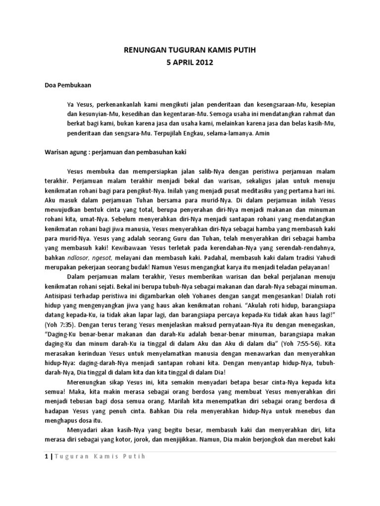 Yang Lain Dari Kamis Putih Jum At Agung Dan Paskah Kompasiana Com from assets-a1.kompasiana.com Doa pada saat tuguran kamis putih : Makna kamis putih adalah saat di mana yesus membasuh kaki muridnya Satu lagi misteri dalam peringatan. Misa hari raya kamis putih (pkl. Download lagu kamis putih (3.22mb) dan streaming kumpulan lagu kamis putih (4.53mb) mp3 terbaru gratis dan enak dinikmati. Untuk cara mendapatkan khodam pendamping maka kita harus membaca doa menurut islam dan kejawen agar keduanya seimbang. Doa pada saat tuguran kamis putih : Kamis putih adalah hari kamis sebelum paskah, pada hari raya pekan suci ini umat kristen mempunyai tradisi memperingati perjamuan malam terakhir yang dipimpin oleh yesus.